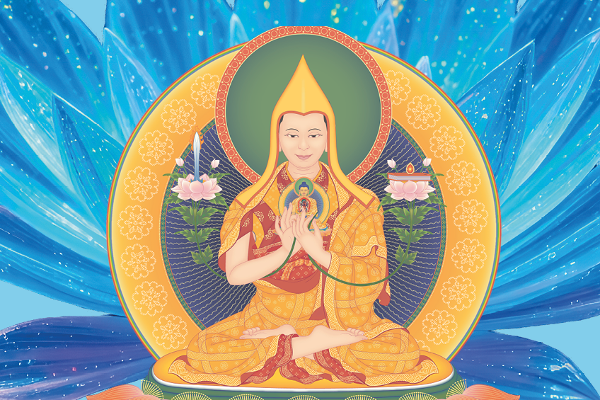 This prayer is very blessed because it was originally uttered by Buddha Manjushri, and comes from Manjushri’s Emanation Scripture, which he transmitted directly to Je Tsongkhapa. Many of Je Tsongkhapa’s followers attained very high realizations through the practice of Migtsema combined with the Guru yoga of Je Tsongkhapa. The Migtsema practice is the best method for increasing our faith in Je Tsongkhapa and his teachings, and if we practise Je Tsongkhapa’s teachings sincerely with faith, we can attain enlightenment quickly and easily.